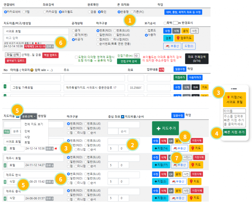 5. 분류기능이 추가 되어 지도가 많을 경우 분류를 기능을 이용할 경우 지도 관리가 편리합니다.